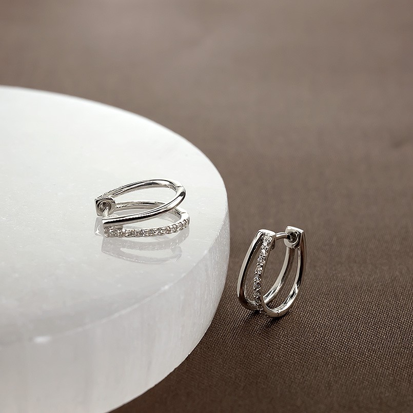 - プラチナ フープ ピアス レディース ダイヤモンド 2連デザイン 中折れ式 金属アレルギー 対応 pt950 シンプル 大人 上品 普段使い ジュエリー 231012hy104dp SWAA309