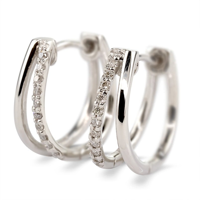 プラチナ フープ ピアス レディース ダイヤモンド 2連デザイン 中折れ式 金属アレルギー 対応 pt950 シンプル 大人 上品 普段使い ジュエリー 231012hy104dp SWAA309