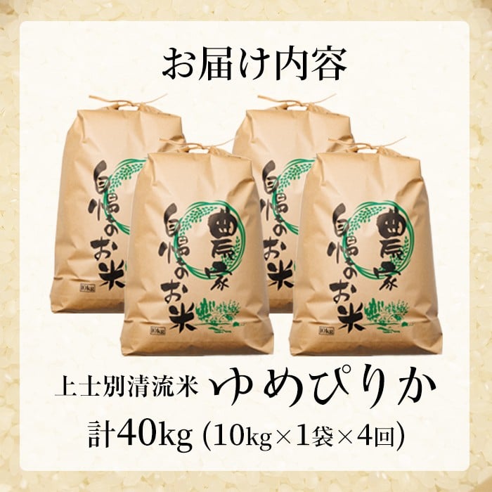 - 【F7196】《定期便・全4回》上士別清流米 ゆめぴりか (10kg×4回・計40kg) 米 お米 精米 白米 北海道米 ごはん ゆめぴりか 北海道産 士別産 10kg 40kg 定期便 【合同会社T&M】