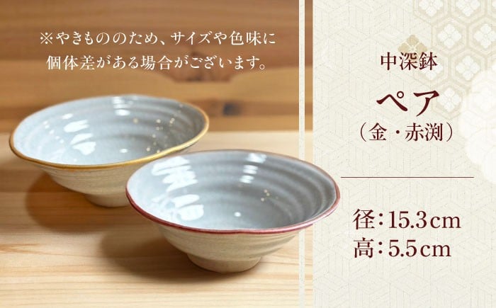 - 【房 空路】中深鉢 ペア(金・赤渕) [UEU006]
