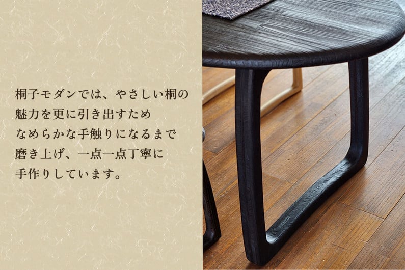 - 【受注生産品】桐製アーモンド型ダイニングテーブル 焼杢 《W1800×D900×H700(mm)》 家具 インテリア テーブル ダークブラウン 食卓 食事 木製 楕円形 モダン 桐子モダン イシモクコーポレーション 加茂市