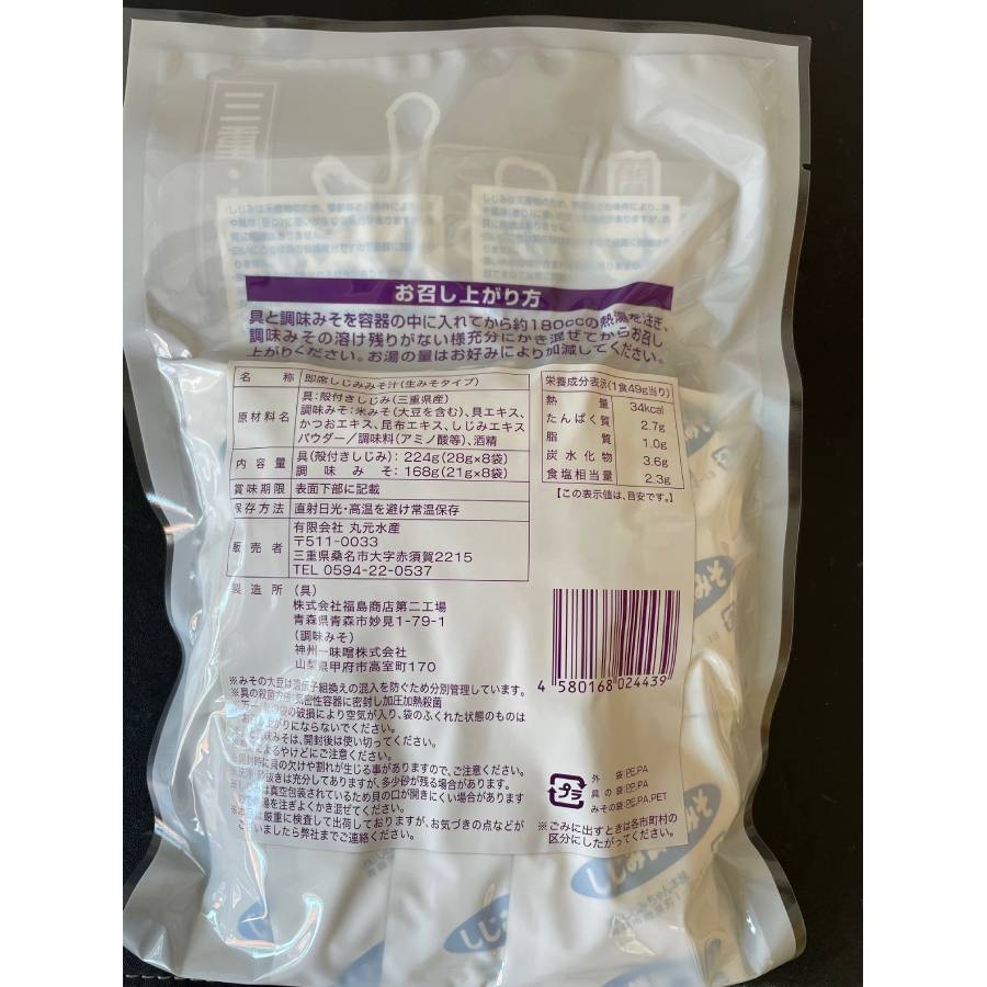 - <丸元水産>「蜆みそ汁」(レトルト)8食入り×2袋