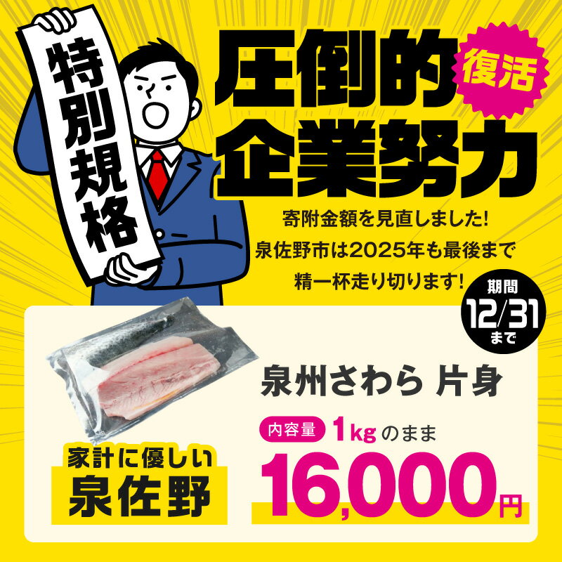 【ふるさと納税】【圧倒的企業努力】 泉州 鰆 片身 約 1kg 鮮度抜群 大ぶり 極肉厚 脂とろり 大阪湾 国産 急速冷凍 冷凍 鮮魚 魚介 魚 海産物 海の幸 塩焼き 焼き魚 おかず お弁当 お取り寄せ お取り寄せグルメ 泉佐野市 送料無料