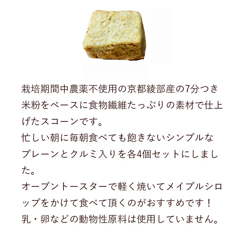 - 【ふるさと納税】お楽しみ 米粉 スコーン 8個セット( プレーン×4 / クルミ×4 )【 米粉 乳不使用 卵不使用 グルテンフリー 天然酵母使用 朝食 朝ごはん 米粉菓子 ティータイム おやつ スイーツ デザート プレゼント 綾部 京都 自然素材 】