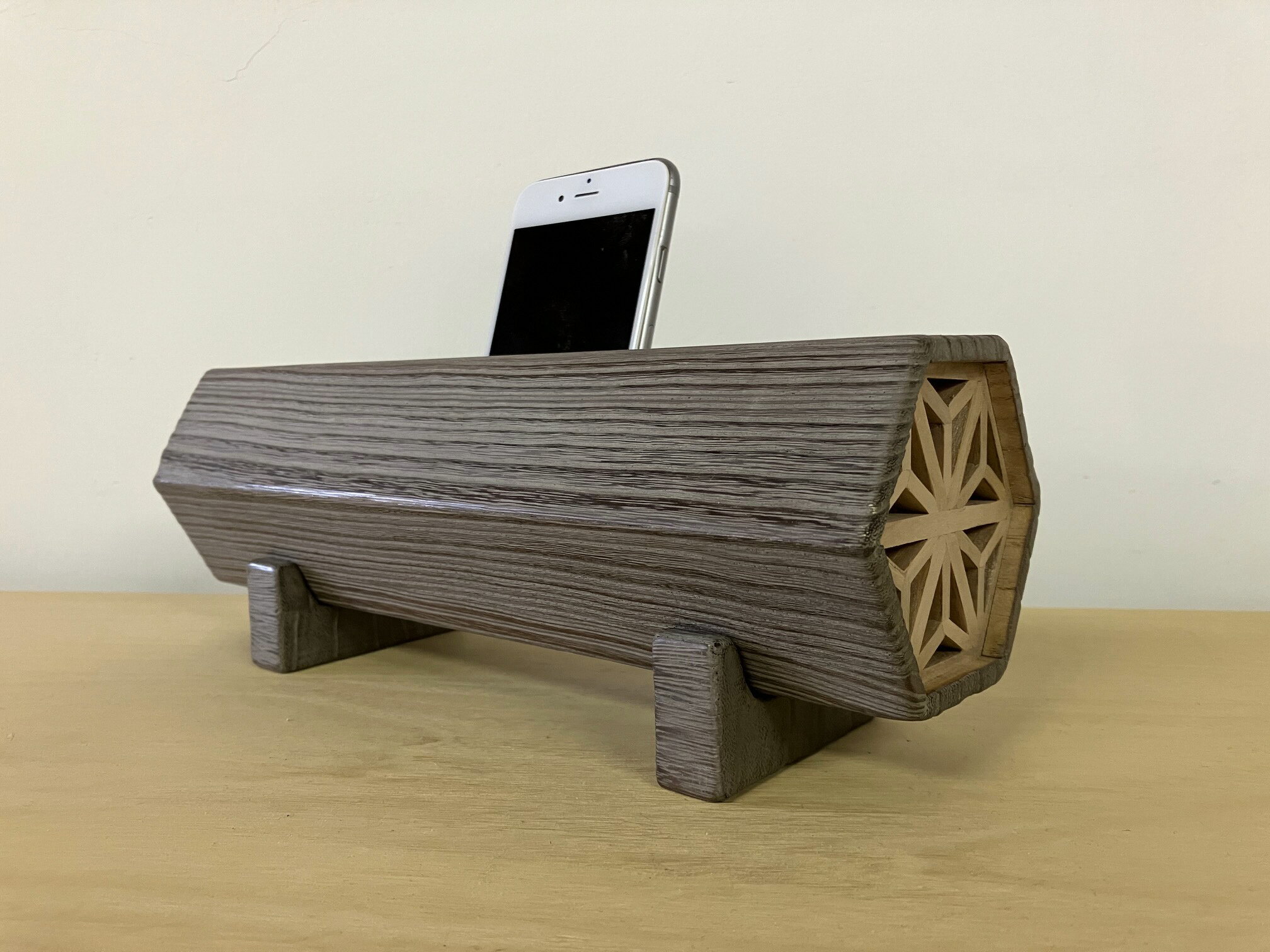 - 【ふるさと納税】桐エコスピーカー 焼仕上 グレー(組子付)《サイズ(外寸):幅280 × 高100 × 奥90 (mm)》桐タンスにも使用している最高級桐材使用 伝統工芸 インテリア 加茂市 鈴木石太郎タンス店