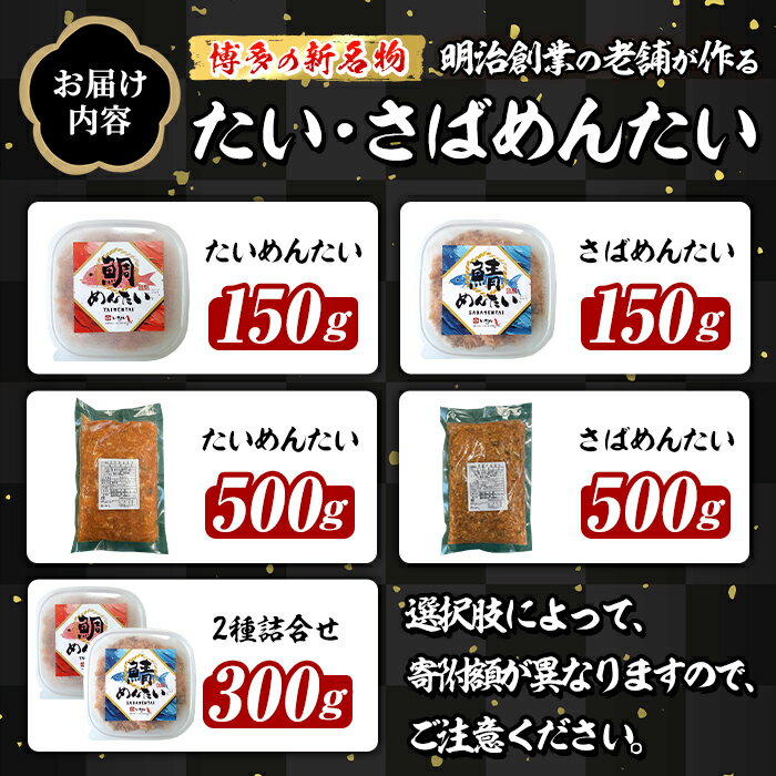 【ふるさと納税】≪種類・容量選べる≫ 博多の新名物 たい・さばめんたい (約150~500g) 明太 タイ 鯛 サバ 鯖 辛子明太子 ごはんのお供 チャーハン パスタ おかず おつまみ 肴 冷凍 セット 食べ比べ 【木村食品】