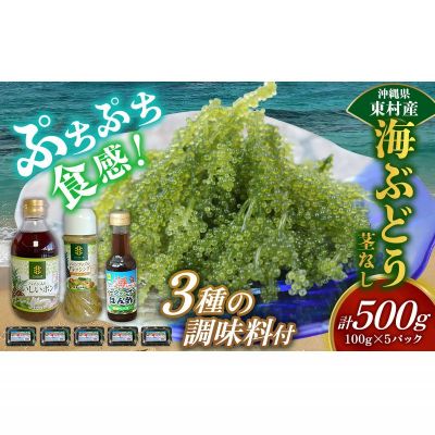 【ふるさと納税】東村を楽しむセット!海ぶどうセット(茎無)500g&調味料3種&ザ・ドラフト500ml×24本 海ブドウ 海ぶどう うみぶどう パック 茎なし クビレズタ たれ付き 海鮮 海藻 プチプチ おつまみ オリオン orion ビール オリオンビール 1ケース 酒 常温 沖縄県 東村