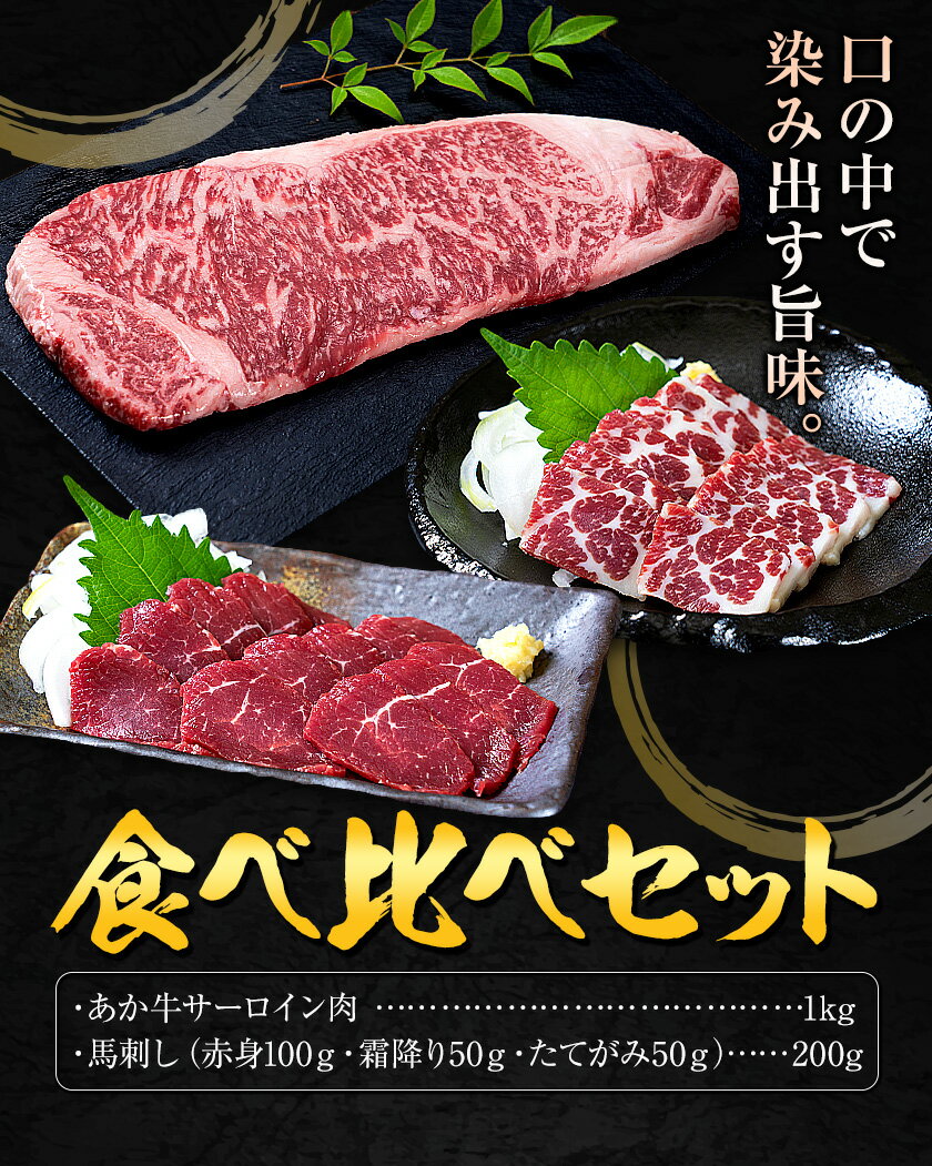 - 【ふるさと納税】あか牛 サーロイン肉 1kg・馬刺し 200g 食べ比べセット 選べる定期便 1回 3回 6回 12回 合同会社たべたせいか《出荷時期をお選びください》牛肉 和牛 ステーキ用サーロイン肉 サーロイン 馬肉 赤身 霜降り たてがみ 馬刺し 熊本県産 送料無料