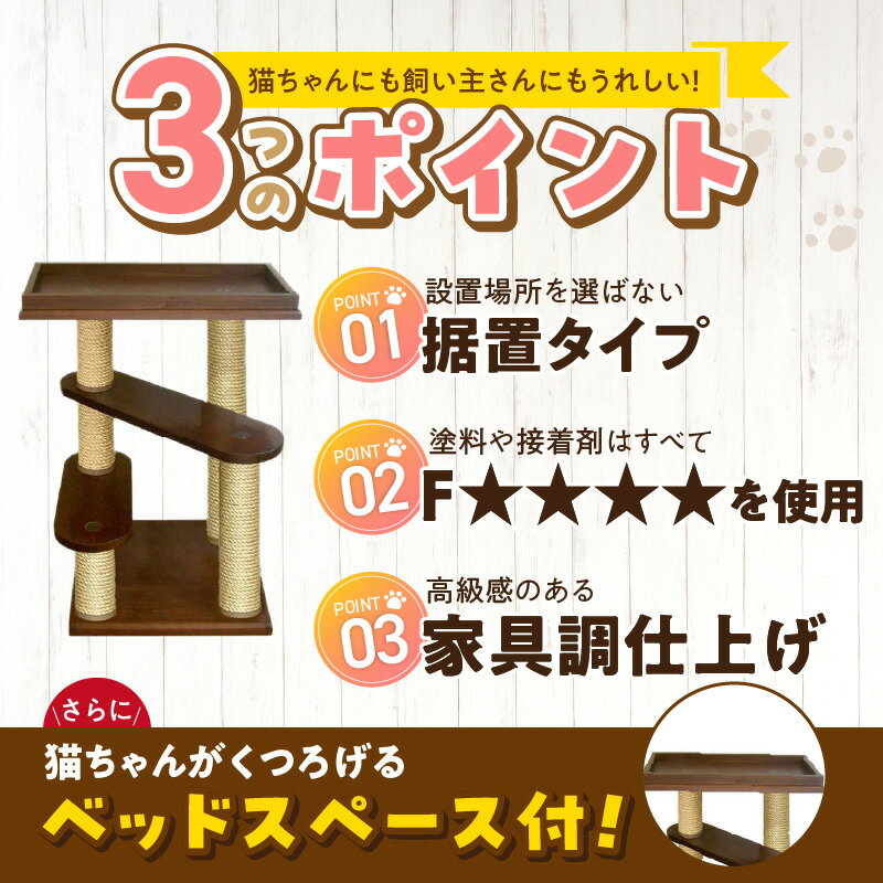 【ふるさと納税】キャットタワー 据置型 猫 猫用 トルネードベーシックミニ ベッド付き 運動不足解消 ストレス解消 安心 安定性 実用性 耐久性 家具調仕上げ インテリア 受注生産 猫タワー ペット用品 お取り寄せ 福岡県 久留米市 送料無料