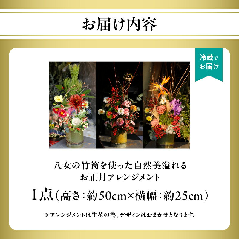 【ふるさと納税】八女の竹筒を使った自然美溢れるお正月アレンジメント お正月 正月 アレンジメント 迎春 インテリア おまかせ 生花 花 フラワーアレンジメント 菊 福岡県 八女市