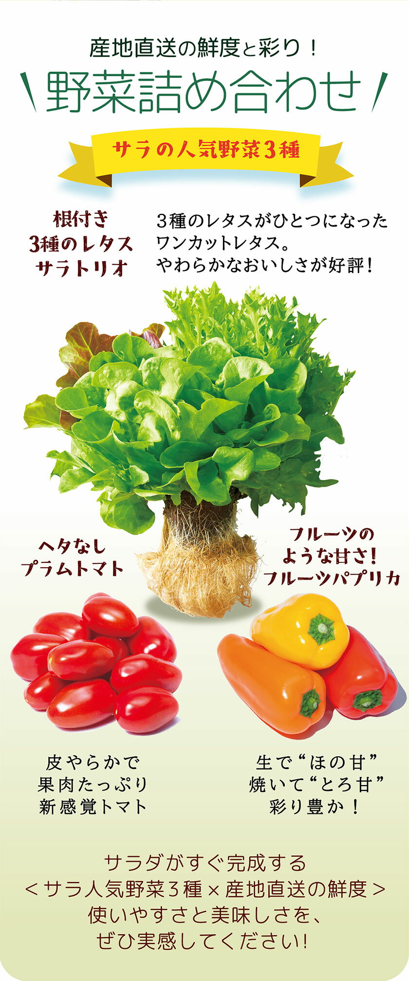 - 【ふるさと納税】サラ詰め合わせセット 野菜13個 サラトリオ 3個 プラムトマト 5個 フルーツパプリカ 5個 野菜 レタス 3種のレタス トマト パプリカ 《30日以内に出荷予定(土日祝を除く)》 笠岡アグリセンター 野菜 岡山県 笠岡市