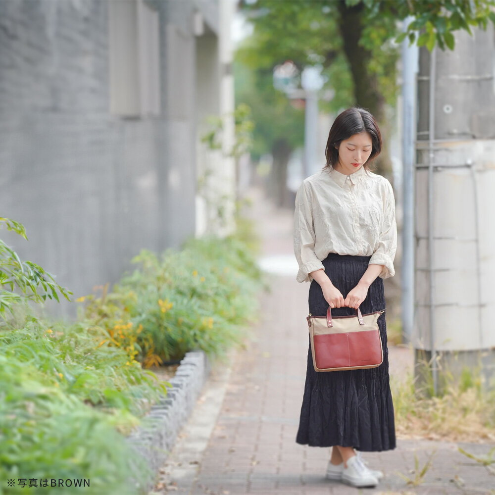 【ふるさと納税】牛革かぶせ×帆布 手提げショルダー<4色から選択> 【12203-0377】 acoustic world 日本製 鞄 かばん 贈り物 プレゼント ギフト 千葉県 市川市