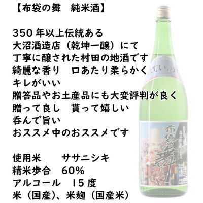 【ふるさと納税】【宮城の銘酒】宮城県村田町 大沼酒造店醸造 布袋の舞 純米酒 1800ml【1206160】