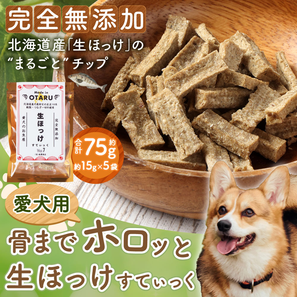 【ふるさと納税】【骨までホロっと】生ほっけすてぃっく 約75g 約15g×5袋 ペット 愛犬 犬用 イヌ用 ペット用 魚 お魚 さかな えさ 餌 チップ ほっけ ホッケ カルシウム ヘルシー おやつ 定期便 北海道 小樽市 常温