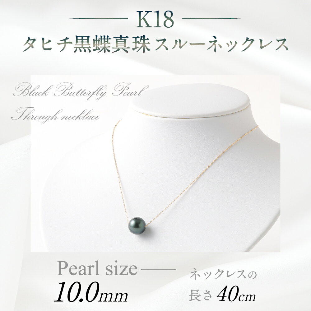 【ふるさと納税】K18 タヒチ 黒蝶 真珠 スルー ネックレス 10.0mm アジャスター付き 90000円 9万円 国産 日本産 スルーネックレス パール 冠婚葬祭 フォーマル 入学式 卒業式 成人式 母の日 ギフト ジュエリー アクセサリー レディース 送料無料