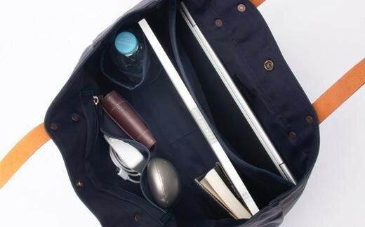 - 【ふるさと納税】トートバッグ 豊岡鞄 BERMAS 横型トート 60485(ネイビー) かばん バッグ トート モバイル対応 クッションポケット 牛革 バーマス