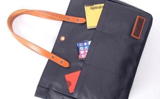 【ふるさと納税】トートバッグ 豊岡鞄 BERMAS 横型トート 60485(ネイビー) かばん バッグ トート モバイル対応 クッションポケット 牛革 バーマス