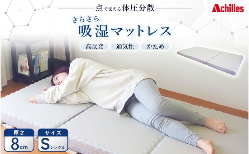 - 【ふるさと納税】アキレス マットレス 点で支える 体圧分散 さらさら 吸湿マットレス シングル 8cm 三つ折り 寝具 高反発 三つ折りマットレス 折りたたみ シングルマットレス ベルオアシス 日用品 滋賀 滋賀県 豊郷町