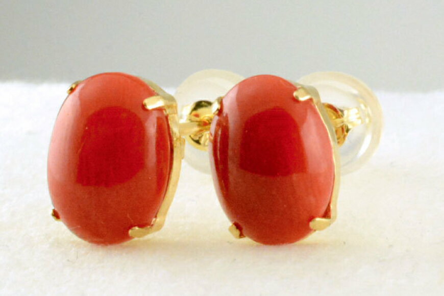 【ふるさと納税】k18 ピアス 珊瑚 サンゴ シンプル k18 イエローゴールド 血赤珊瑚 no.cas6800 [シエロ 山梨県 中央市 21470998] ジュエリー アクセ アクセサリー 18金 K18 イエロー ゴールド