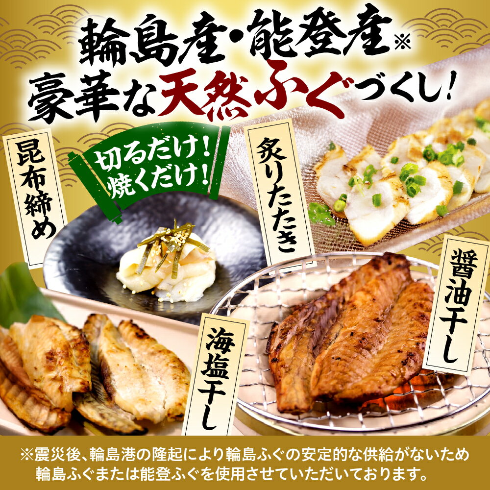 【ふるさと納税】豪華 な 輪島ふぐ セット 4品 | 輪島ふぐの醤油干し ふぐの海塩干し ふぐの昆布締め ふぐの炙りたたき ふぐ 天然ふぐ 干物 昆布締め 炙りたたき 魚介 海鮮 加工品 惣菜 南谷良枝商店 能登 石川県 輪島市