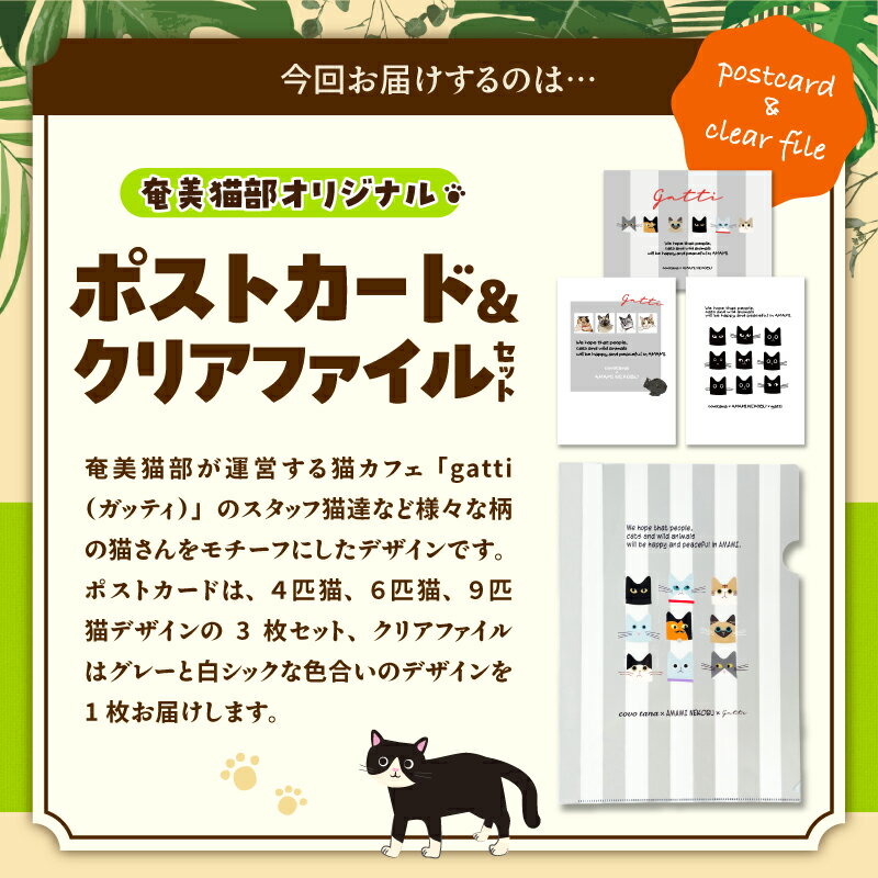 【ふるさと納税】【奄美の保護猫支援 ワクチン代】+ ポストカード & クリアファイル セット お手紙 ファイル A4 文具 文房具 猫デザイン 猫カフェ 保護猫 猫 支援 cafeCOVOTANA 鹿児島 奄美市 おすすめ ランキング プレゼント ギフト