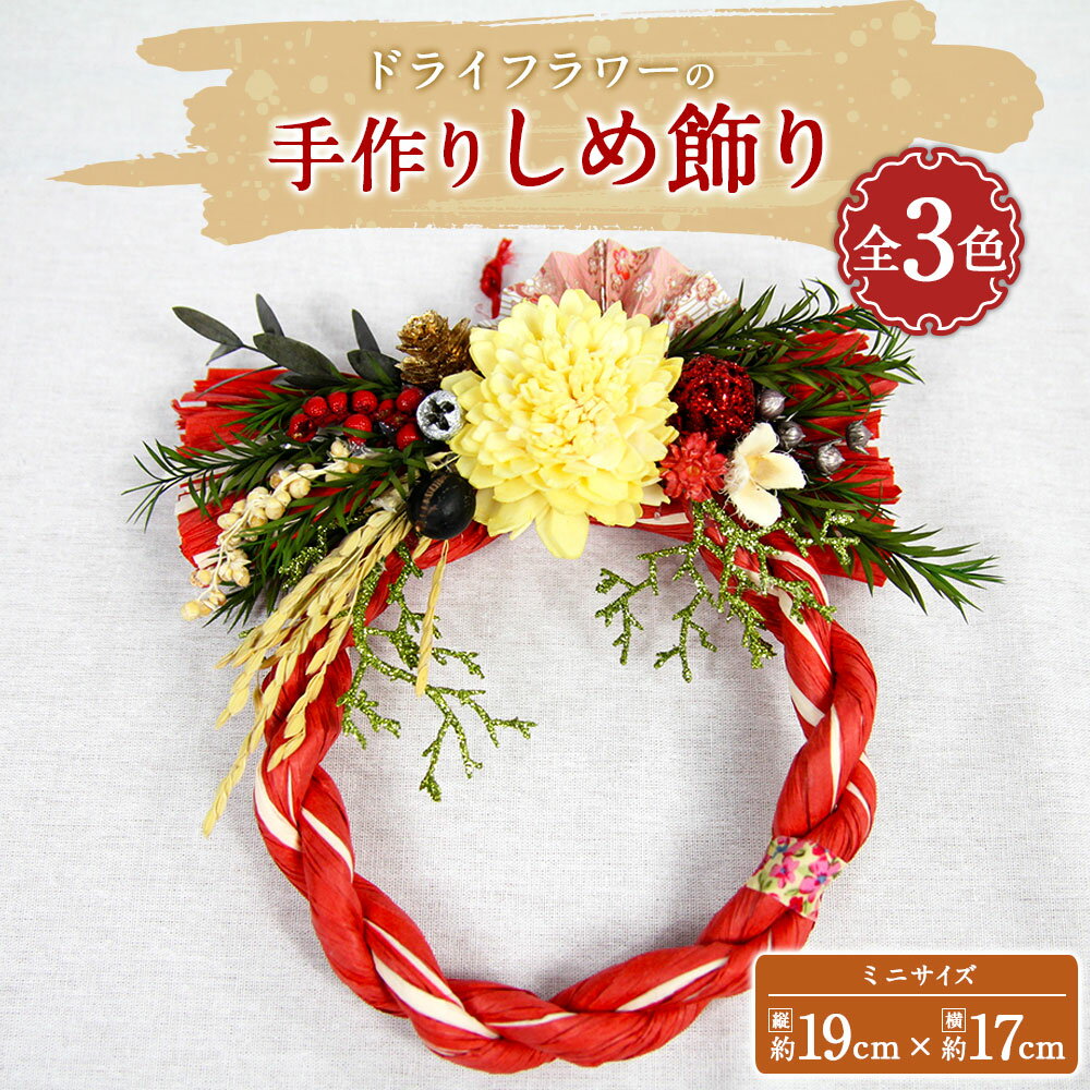 【ふるさと納税】【数量限定】ドライフラワーの 手作りしめ飾り ミニサイズ ※全3色 赤 グリーン ピンク フラワーリース しめ縄 しめ飾り ドライフラワー プリザーブドフワラー 花 アレンジメント インテリア ギフト プレゼント 贈り物 お祝い 内祝い 送料無料