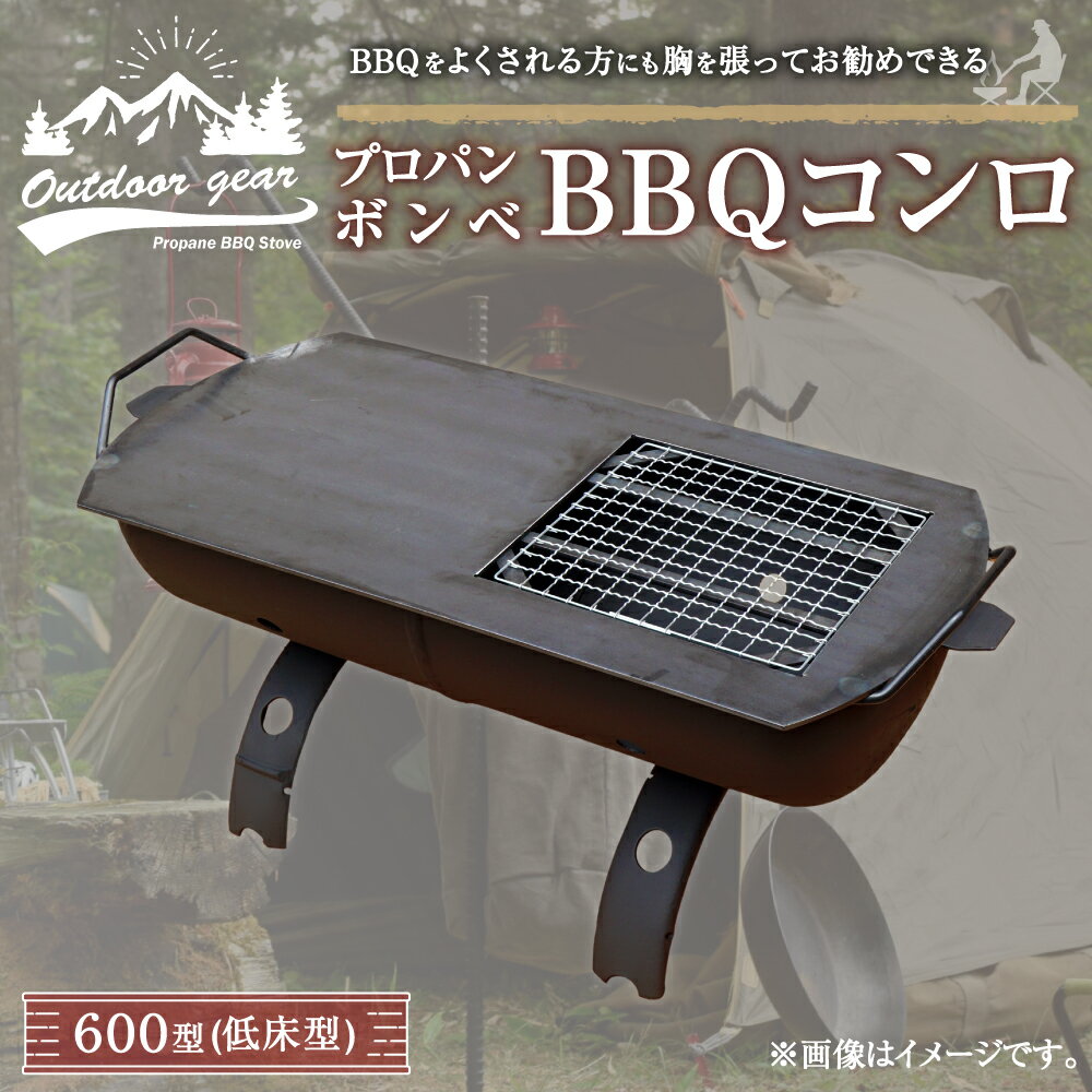 【ふるさと納税】プロパンボンベ BBQコンロ 600型 (低床型) アウトドア キャンプ バーベキュー 焚火 焚き火 たき火 たき火台 鉄板付き 水俣市 熊本県 送料無料