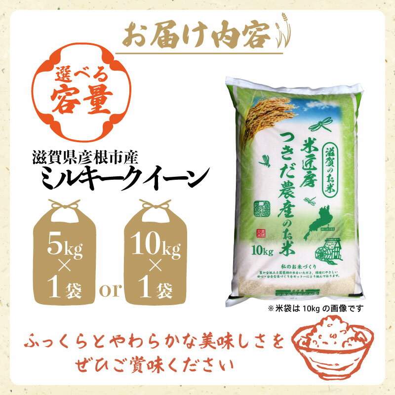 - 【ふるさと納税】 令和7年産 ミルキークイーン 白米 選べる 容量 5kg×1袋 10kg×1袋 米 コメ お米 新米 5キロ 10キロ 米5kg 米10kg ご飯 ごはん みるきーくいーん おにぎり お弁当 5kg 10kg 5 10 滋賀 彦根