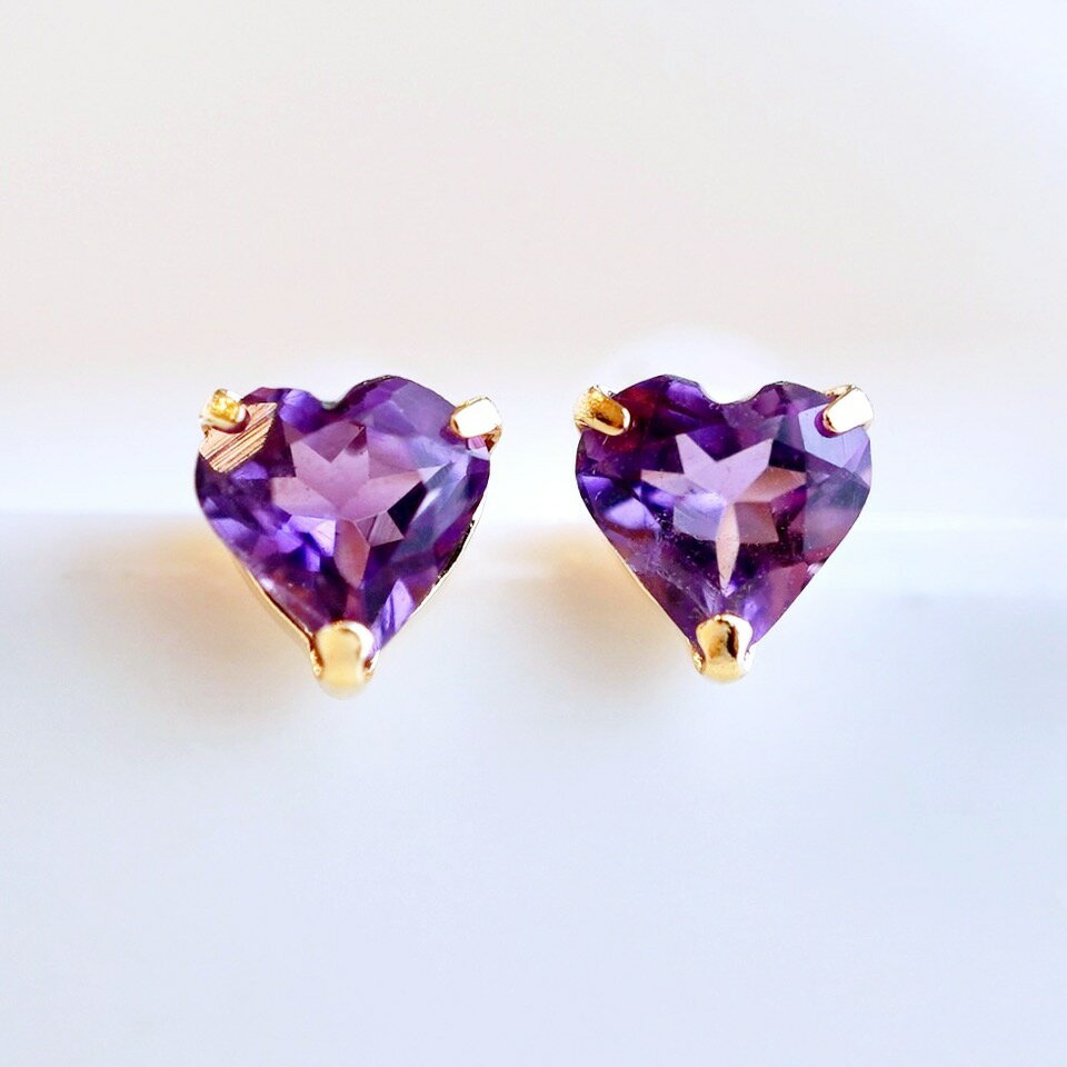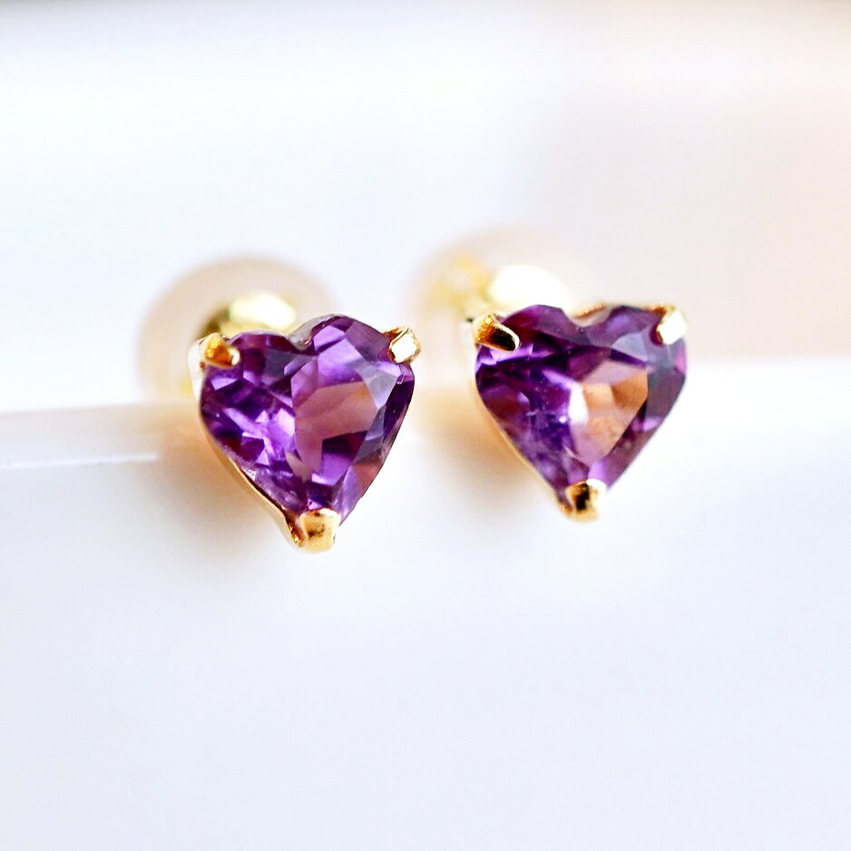 【ふるさと納税】K18 18金 アメシスト ハートシェイプ ピアス 5mm 一粒石 保証書付 KO-0062 SWAD094