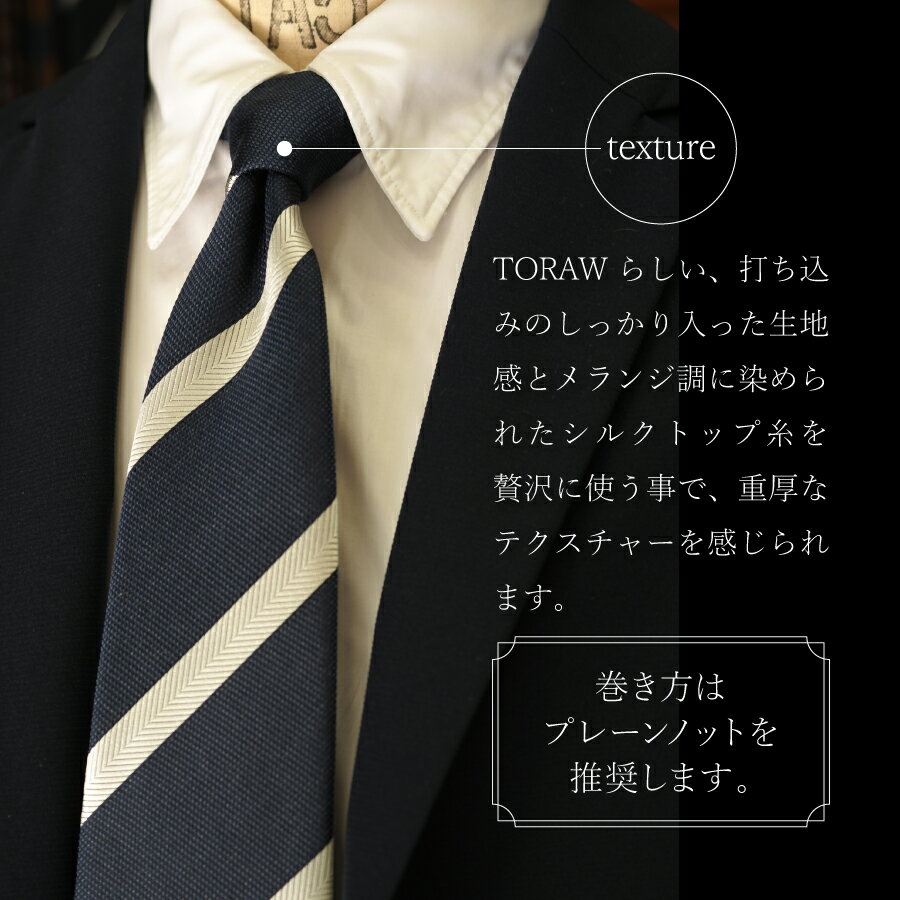 - 【ふるさと納税】 ネクタイ シルク100% ネイビー×オフ TORAW040 メンズ ファッション 男 スーツ シルクネクタイ ストライプタイ ヘリンボーン メランジ調 ボタニカル柄 大剣幅8.5cm レギュラースタイル 高級 上品 織物 プレゼント ギフト 父の日 ビジネス 新生活