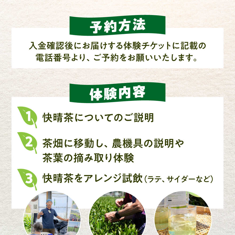 - 【ふるさと納税】【ランチなし】「快晴茶」お茶摘み体験チケット[BDAT007]