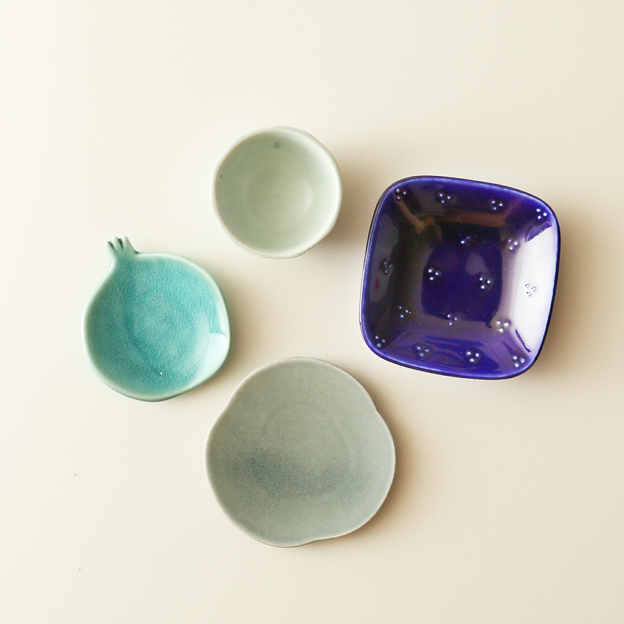 - 【ふるさと納税】 テシオ 豆皿セット 4枚組(柘榴・緑) 東京都 江東区 皿 食器 セット 詰合せ 豆菓子 味見皿 和菓子 漬物 角 タレ皿 醤油皿 副菜 送料無料