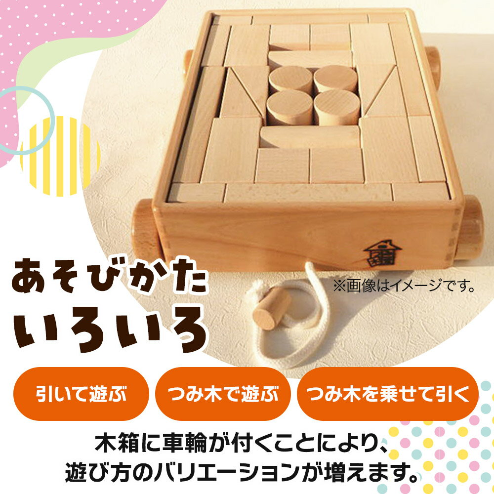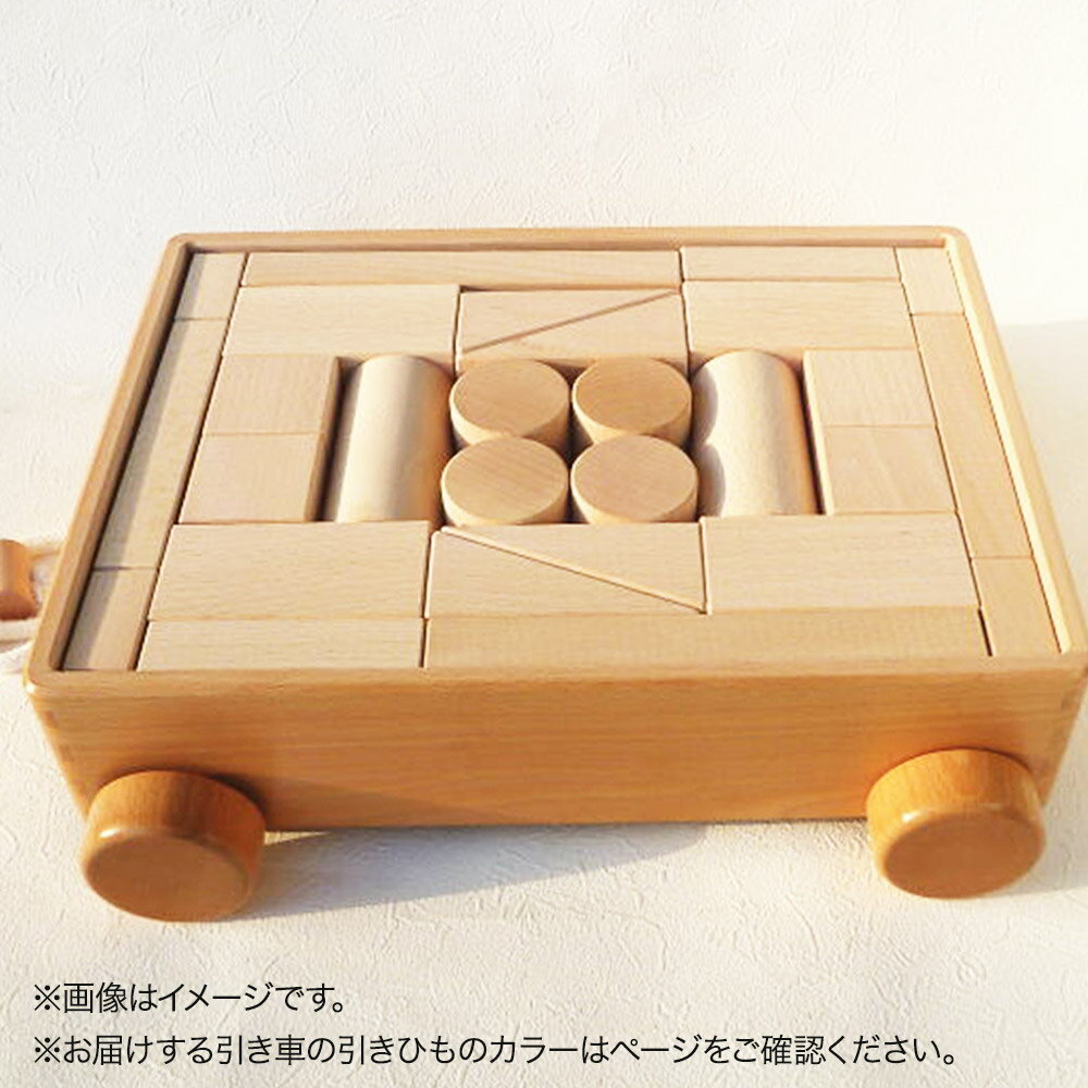 - 【ふるさと納税】引き車 白木一段(340×300×85mm)【選べる 引きひもカラー】天然無垢 白木つみ木 つみき 積み木 木のおもちゃ つみ木堂 群馬県 明和町