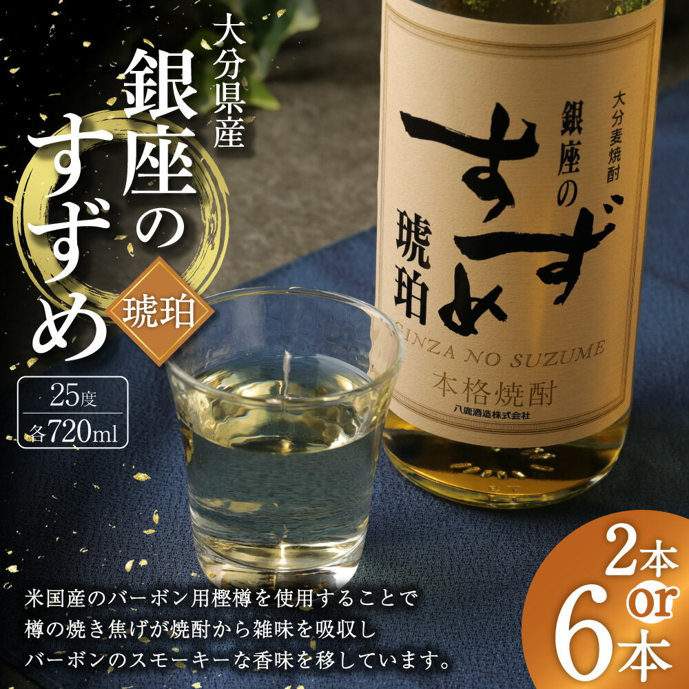 【ふるさと納税】【選べる容量】25度 銀座のすずめ (琥珀) 2本/6本 合計1.44L/4.32L セット 1本あたり720ml 焼酎 麦焼酎 麦 麦麹 お酒 アルコール 瓶 国産 九州産 大分県産 送料無料