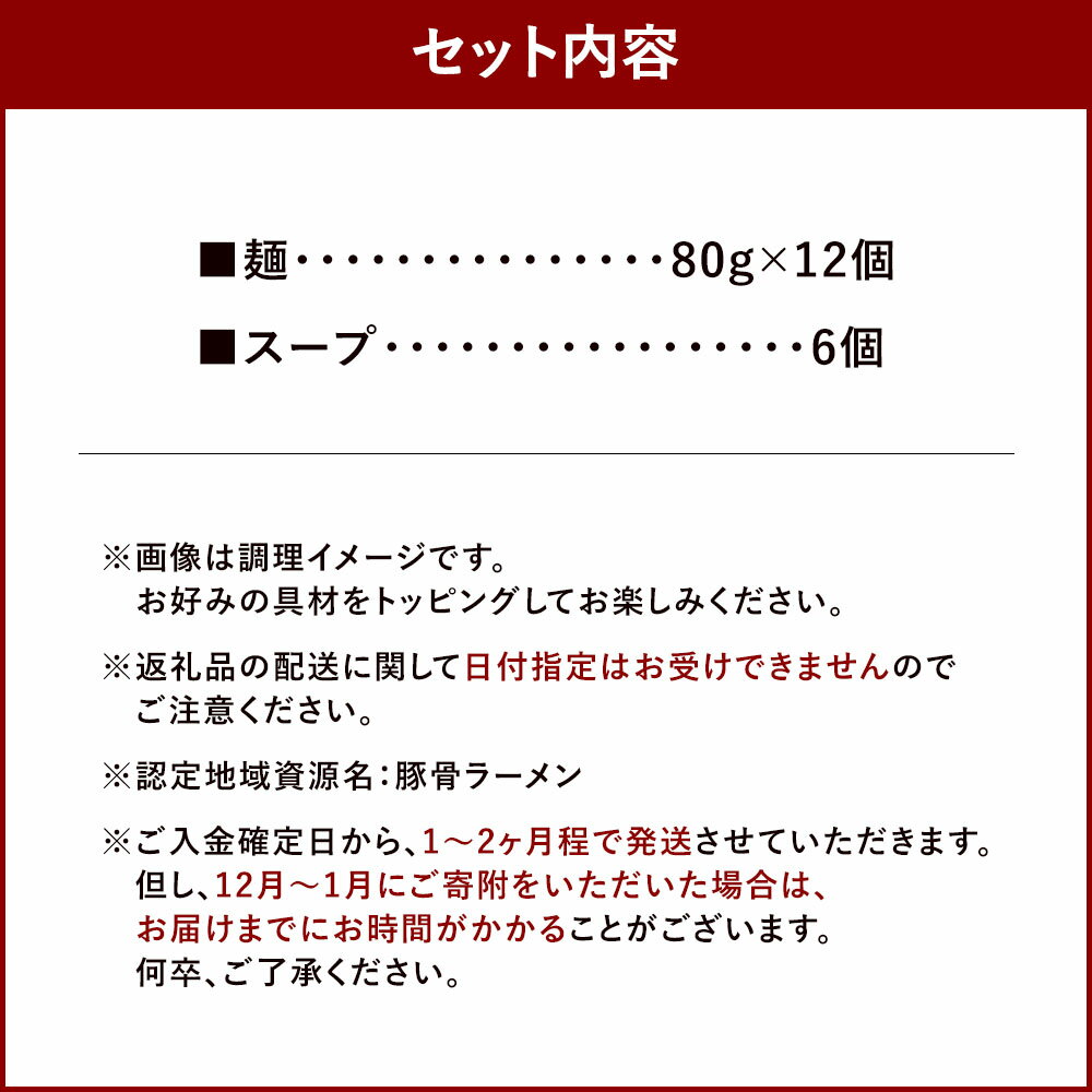 - 【ふるさと納税】長浜ラーメンセット 6食 替え玉付 麵×12個・スープ×6個 らーめん 拉麵 麺類 とんこつ 豚骨 惣菜 中華 博多 グルメ 福岡県産 国産 九州 福岡県 大任町 送料無料