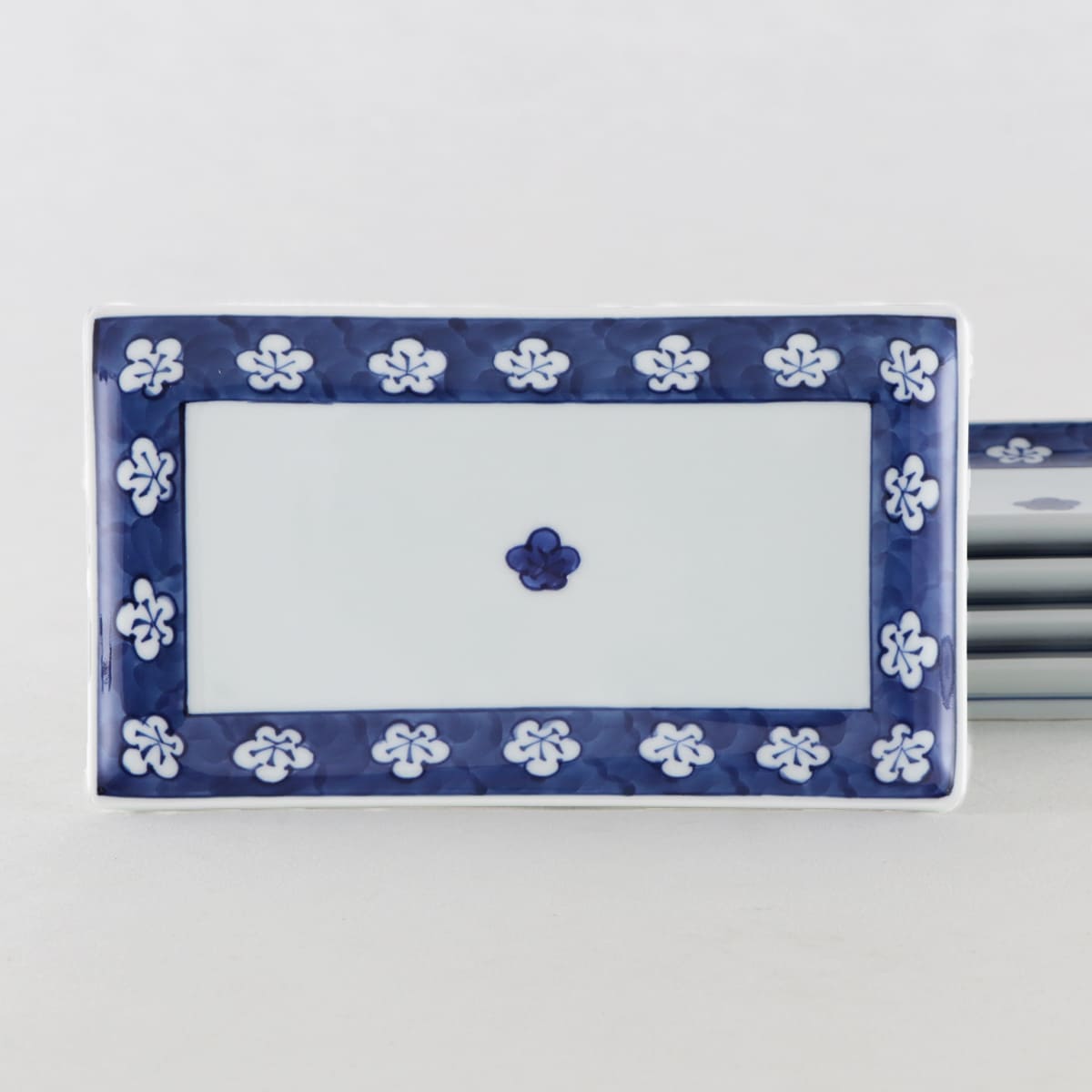 - 【ふるさと納税】有田焼 古染風梅紋 長角皿 5枚セット 20.5×12cm 横長 角皿 焼物皿 盛皿【源右衛門窯】ギフト 人気 皿 食器セット プレゼント おしゃれ 伝統工芸 手仕事 贈答用 テーブルウェア 和食器 花柄 130000円 13万円 A130-33