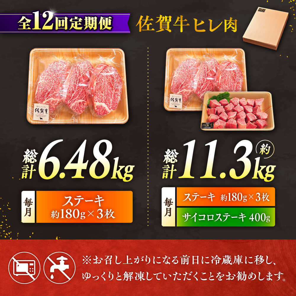 【ふるさと納税】【全12回定期便】佐賀牛 赤身 希少部位 ヒレ ( ステーキ 3枚 or ステーキ+ サイコロステーキ400g セット ) | 牛肉 焼肉 和牛 ブランド牛 |吉野ヶ里町/やま田商店[FCH022/FCH028]