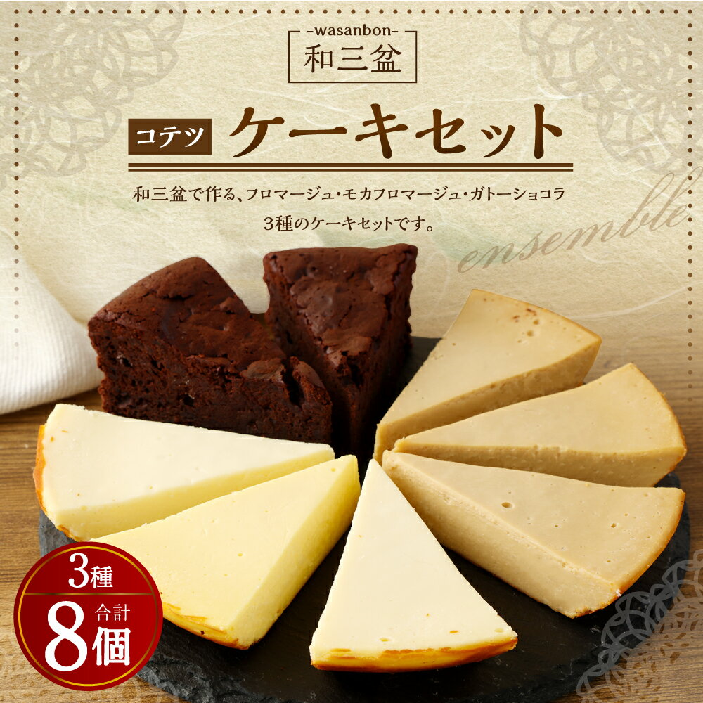 - 【ふるさと納税】3種類の和三盆 ケーキ 合計8個 セット モカフロマージュ3個 フロマージュ3個 ガトーショコラ2個 わさんぼん 和三盆 食べ比べ 詰め合わせ デザート ケーキ 洋菓子 スイーツ 福岡県 苅田町 送料無料
