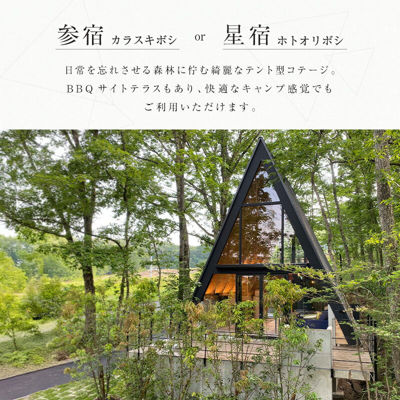 - 【ふるさと納税】宿泊券 RAKUSAN コテージ 1棟貸切 1泊2食 ペア宿泊券 フレンチディナーコース付き 北広島町 豊平 長笹樂山 バンガロー 星宿 参宿