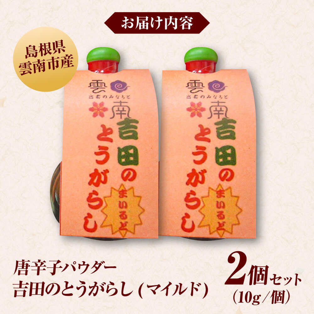 【ふるさと納税】唐辛子 吉田のとうがらし【マイルド】(唐辛子パウダー)10g×2個 薬味 調味料 調味 香辛料 唐辛子 キムチ おすすめ お取り寄せ とうがらし 一味唐辛子 一味 スパイス 詰め合わせ セット 人気 おすすめ ギフト 島根県雲南市/有限会社田井産業[AICY003]