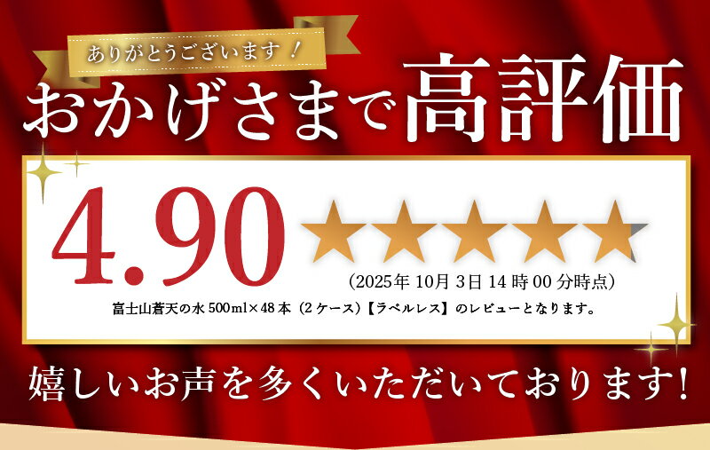 【ふるさと納税】 \発送時期が選べる/ 富士山蒼天の水<ラベルレス> 500ml×48本 (2ケース) 天然水 ミネラルウォーター 水 シリカ ランキング 防災 備蓄 高評価 人気 おすすめ 年内発送 アウトドア ペットボトル 大容量 10000円以下 軟水 国産 長期保存 ※沖縄県離島不可