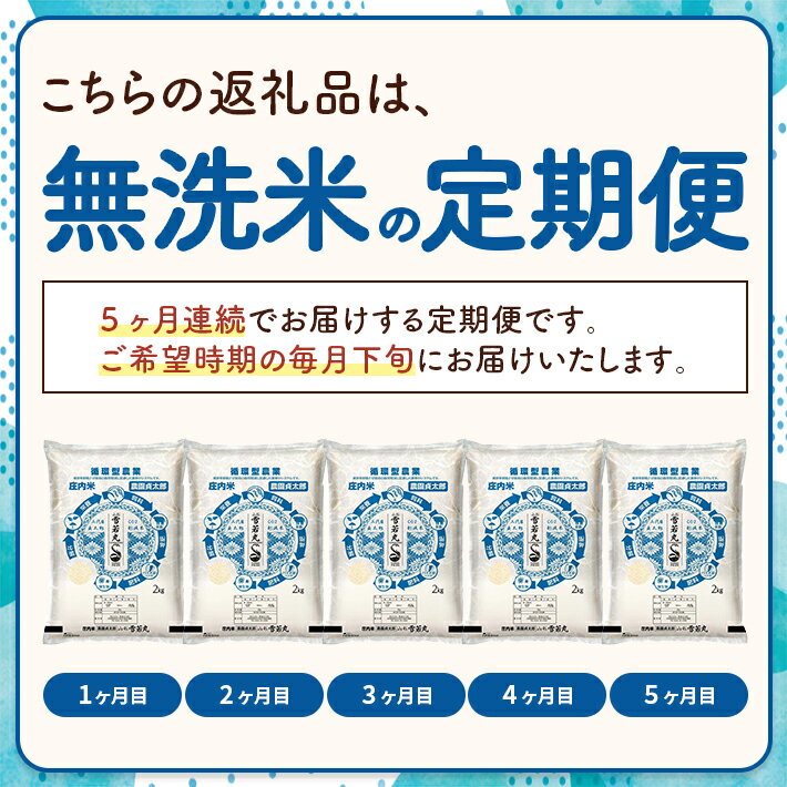 【ふるさと納税】≪5ヶ月定期便≫ 無洗米 雪若丸 2kg×5ヶ月連続 計10kg 令和7年産 山形県産 ご希望期間の毎月下旬にお届け 白米 庄内米 米 ごはん ご飯 一人暮らし 少人数 小分け 酒田市 庄内 山形県 東北 定期便 5回