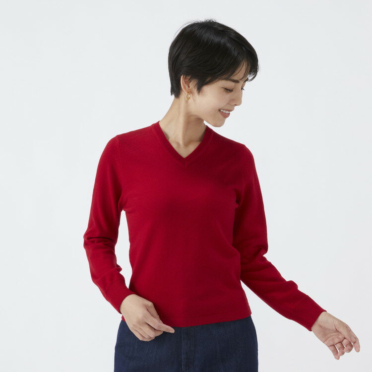 - 【ふるさと納税】【選べるサイズ】日本製 カシミヤ100% レディース Vネック レッド