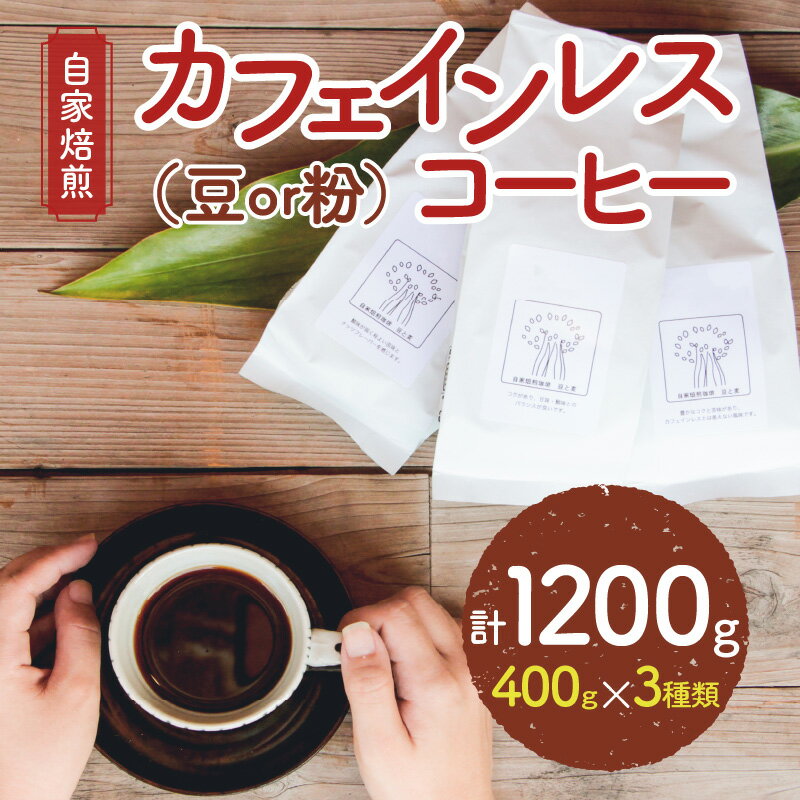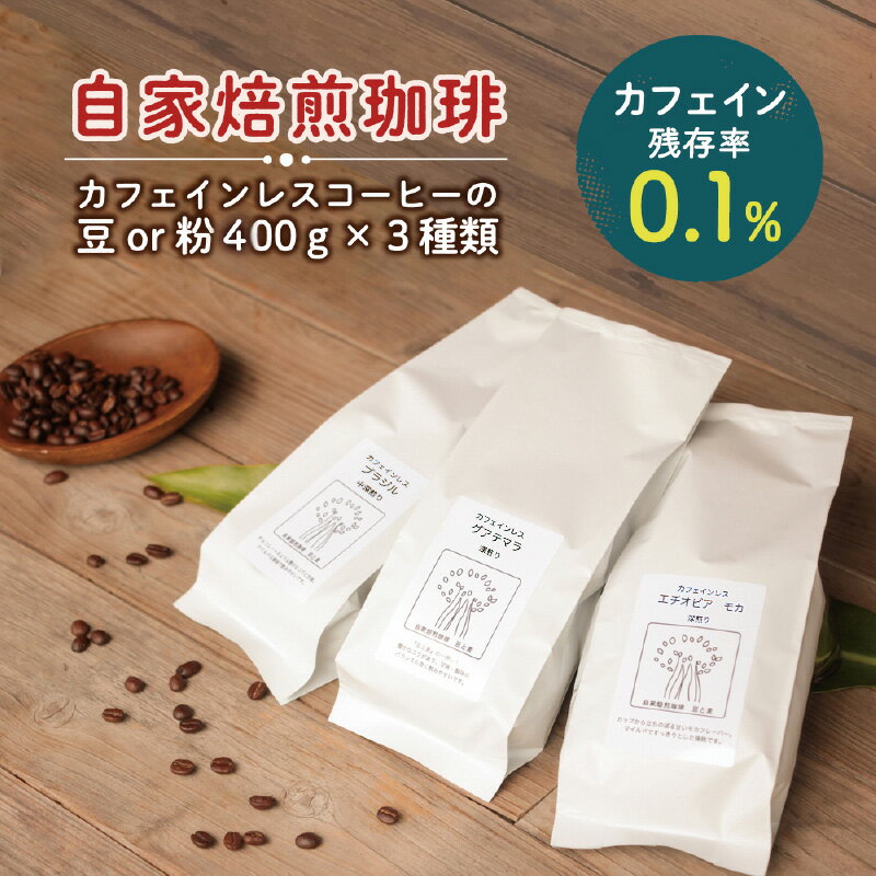 【ふるさと納税】<選べる>カフェインレス コーヒー 自家焙煎 豆 粉 デカフェ 400g 3種類 計1200g ギフト対応 ブラジル グアテマラ エチオピア 飲料 自家焙煎珈琲 豆と麦 鹿児島 奄美市 おすすめ ランキング プレゼント ギフト