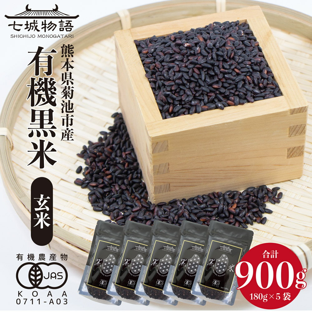 - 【ふるさと納税】熊本県菊池産 有機黒米 (玄米) 合計900g 180g×5パック 令和6年産 七城物語 黒米 古代米 雑穀 雑穀米 国産 九州産 熊本県産 送料無料《30日以内に出荷(土日祝を除く)》