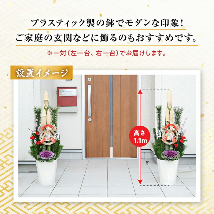 【ふるさと納税】門松 一対 モダン 1.1m お正月飾り 【選べる鉢色:白 or 黒】 正月 迎春 新年 大村市 琴花園 [ACYK009]
