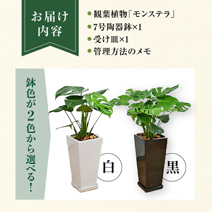 - 【ふるさと納税】観葉植物 モンステラ 8号サイズ ロングスクエア 陶器鉢植え 【えらべる鉢色:白 or 黒】 / 観葉 植物 インテリア おしゃれ プレゼント / 大村市 / 琴花園[ACYK004]