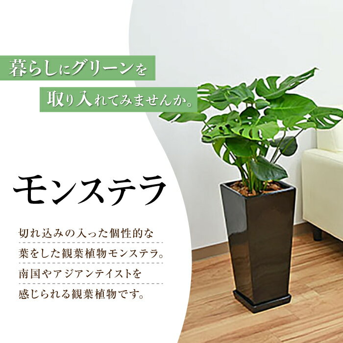 【ふるさと納税】観葉植物 モンステラ 8号サイズ ロングスクエア 陶器鉢植え 【えらべる鉢色:白 or 黒】 / 観葉 植物 インテリア おしゃれ プレゼント / 大村市 / 琴花園[ACYK004]