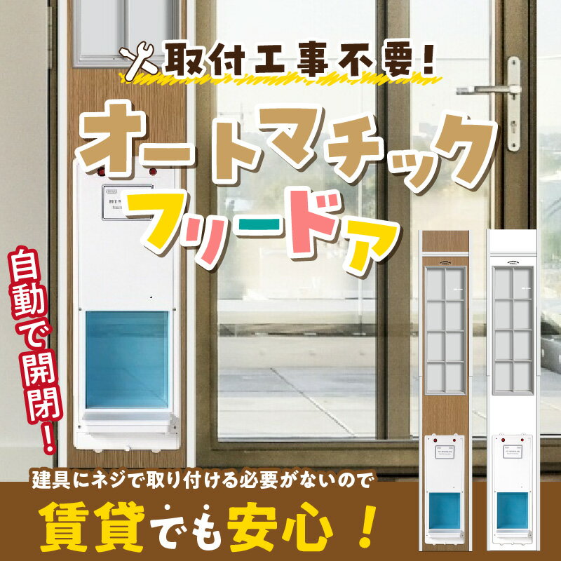 【ふるさと納税】オートマチック フリードア 普通サイズ 猫用 白 木目 工事不要 パネル一体型 ペットドア 賃貸可 サッシ 引き戸レール 取付 簡単 自動開錠 自動開閉 専用 マグネットキー 高さ調整 受注生産 日本製 国産 ペット用品 お取り寄せ 福岡県 久留米市 送料無料