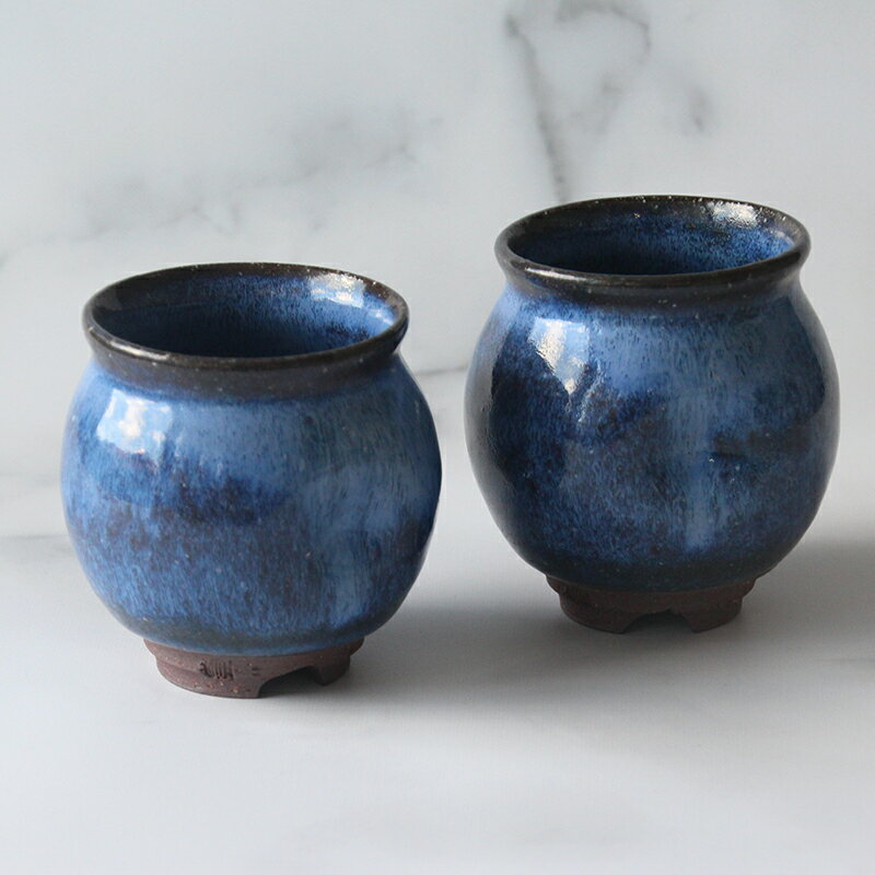 - 【ふるさと納税】萩焼 だるま組湯呑 蒼釉 陶器 ギフト 人気 モダン 和モダン かわいい 山口県 萩市 日本製 贈り物